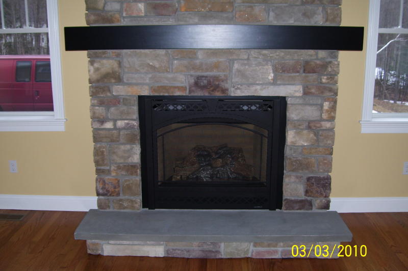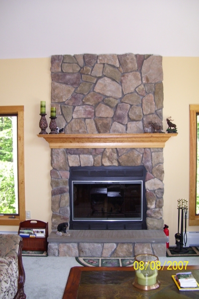Cultured Stone Surround With Custom Wood Mantel